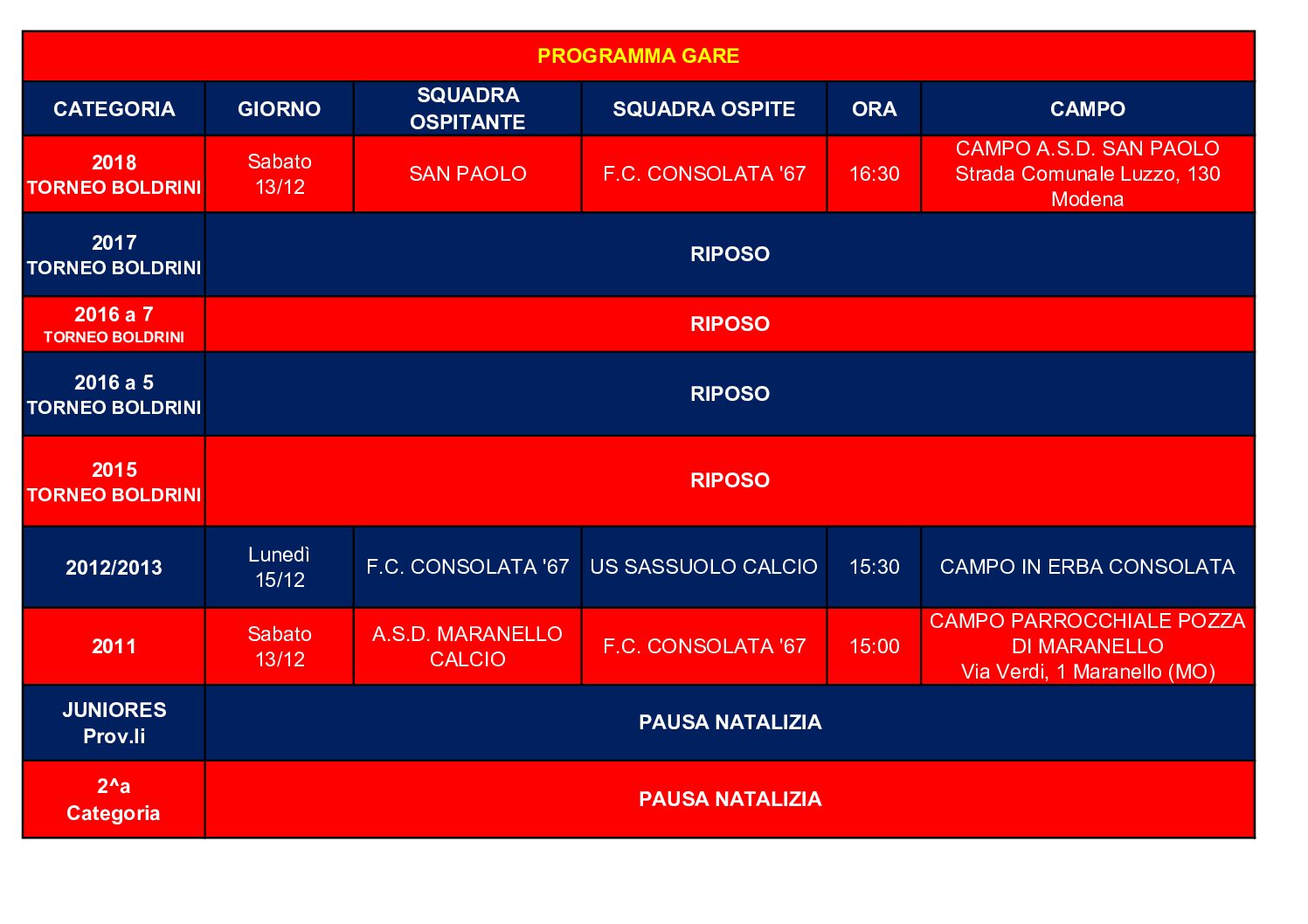 Programma gare_Settimama 08/12/2025 – 15/12/2025